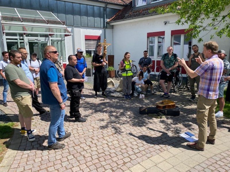 Aber nicht nur das machte diesen Tag zum Highlight, sondern vor allem die Abwechslung zwischen dem Gehen in Schweigen, seinen eigenen Gedanken zuzuhören, zu beten und zu singen. Besonders bewegend fanden die Wallfahrer/-innen die Andachten von Andreas Frey. Er gehört zum Seelsorge-Team der Deutscher Orden Ordenswerke und bereicherte diesen Tag mit Gesang, Gitarre und Gebet. Durch die christlichen Impulse und sein Motto, das dieses Ereignis begleitete - Maria, die versorgt, und Maria, die Versorgte – konnten sich alle durch eigene Erfahrungen selbst mit einbringen und auf Zettel nieder schreiben, wo sie selbst versorgt wurden in ihrem Leben und durch wen.